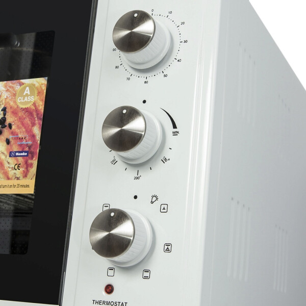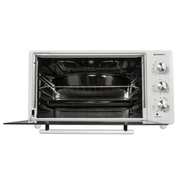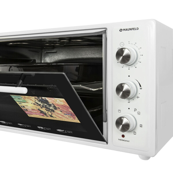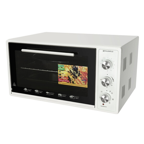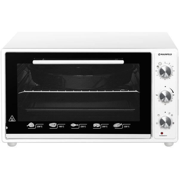 Особенности: гриль, термостат, таймер (90 мин), автоотключение, звуковой сигнал, эмаль лёгкой очистки, уплотнитель стеклянной дверцы, защитное крепление из металла для стекла, широкое термостойкое стекло, плотное крепление нагревательных элементов, нагревательные элементы из нерж. стали (нижний-скрытый), механизм легкого съема дверцы, индикатор термостата, индикатор режима конвекции