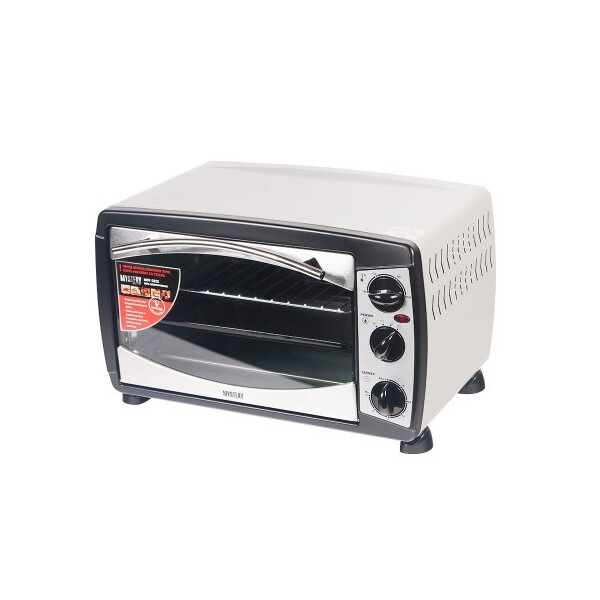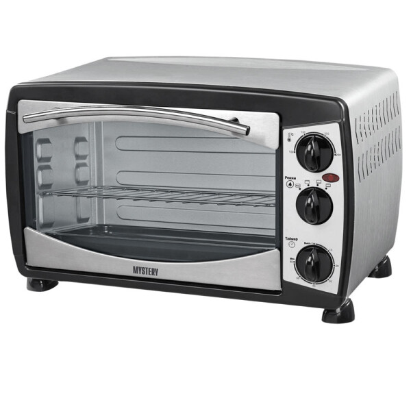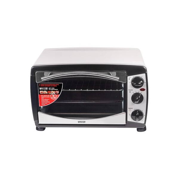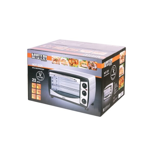 Электропечь Mystery MOT-3325 компактная, но очень мощная модель. Ее объем составляет всего 23 л, но она ничуть не уступает более крупным моделям в скорости работы благодаря своей мощности в 1500 Вт. Максимальная температура, которую позволяет настроить эта модель электропечи, также довольно высокая 250. Температурный режим регулируется вручную, благодаря чему вы можете настроить подходящий именно для вас. Таймер Mystery MOT-3325 предназначен для того, чтобы вы точно знали, когда будет готово ваше блюдо.