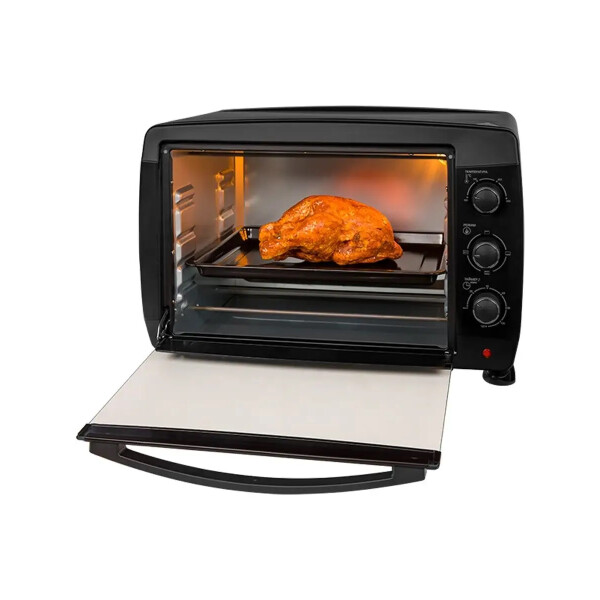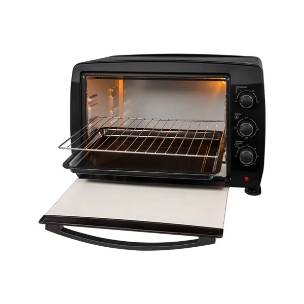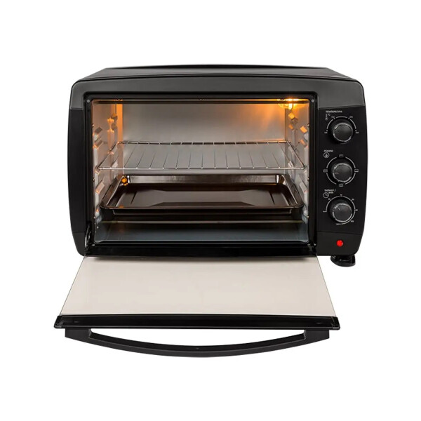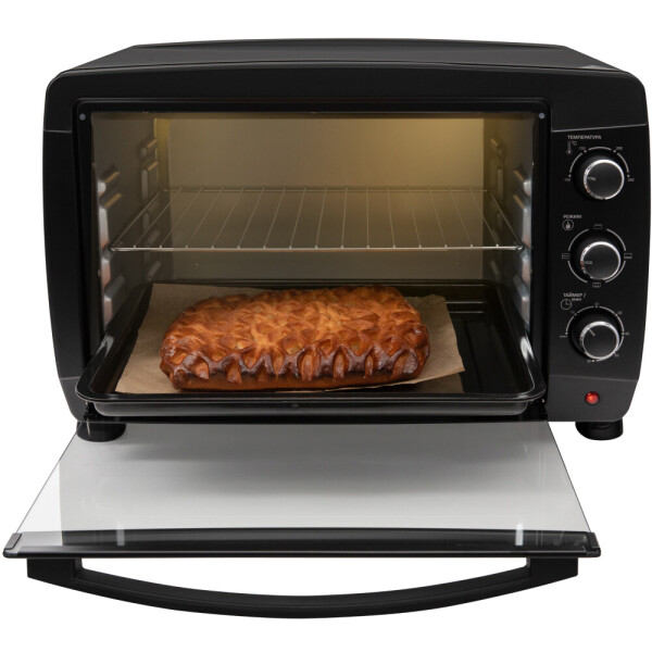 Настольная духовка оснащена прямоугольным противнем с размерами 40,05*31*2,65 см, решеткой для гриля.