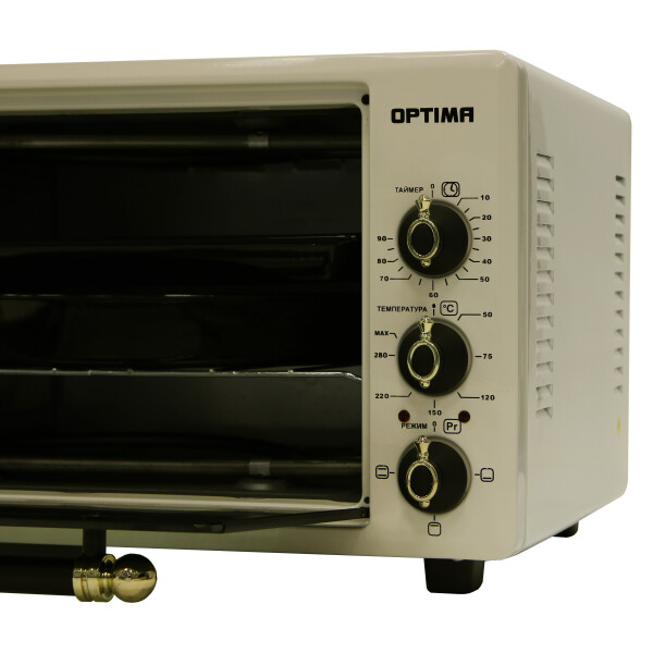 Духовка электрическая OPTIMA OF-36BR станет настоящим украшением любой кухни с ее в меру броским и элегантным дизайном в ретро стиле. Внутренний объем камеры составляет 36 литров, а мощность 1300Вт. Два нагревательных элемента (верхний и нижний) обеспечивают быстрый и равномерный нагрев от 50 до 300 градусов. Данная модель оснащена таймером с функцией автоотключения через 90 минут, что несомненно добавляет удобства в использовании данной модели. Качественная теплоизоляция корпуса обеспечивает безопасность и исключает вероятность ожога при прикосновении. Встроенная лампа улучшает обзор и позволяет готовить с комфортом. В комплект входят решетка, круглый и квадратный противни, которые можно одновременно разместить на двух разных уровнях для приготовления блюд.