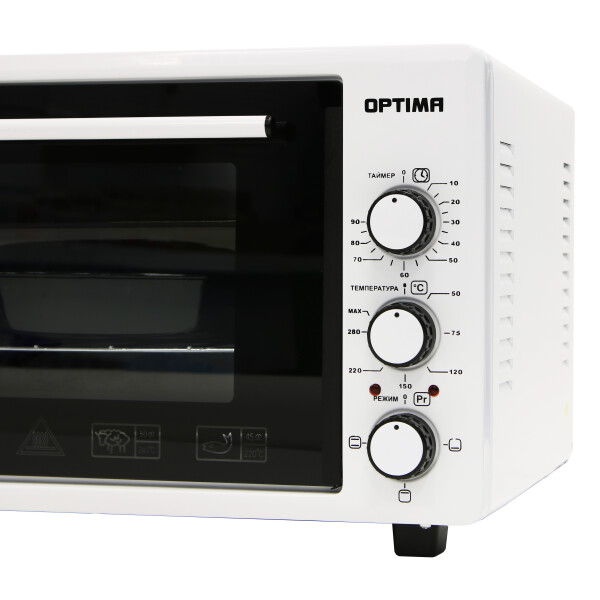 Духовка электрическая OPTIMA OF-36W выполнена в стильном компактном корпусе белого цвета. Внутренний объем камеры составляет 36 литров, а мощность 1300Вт. Два нагревательных элемента (верхний и нижний) обеспечивают быстрый и равномерный нагрев от 50 до 300 градусов. OPTIMA OF-36W оснащена таймером с функцией автоотключения через 90 минут, что несомненно добавляет удобства в использовании данной модели. Качественная теплоизоляция корпуса обеспечивает безопасность и исключает вероятность ожога при прикосновении. Встроенная лампа улучшает обзор и позволяет готовить с комфортом. В комплект входят решетка, круглый и квадратный противни, которые можно одновременно разместить на двух разных уровнях для приготовления блюд.