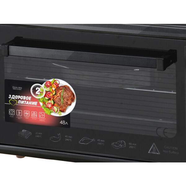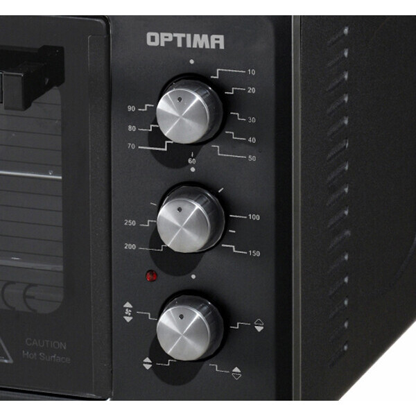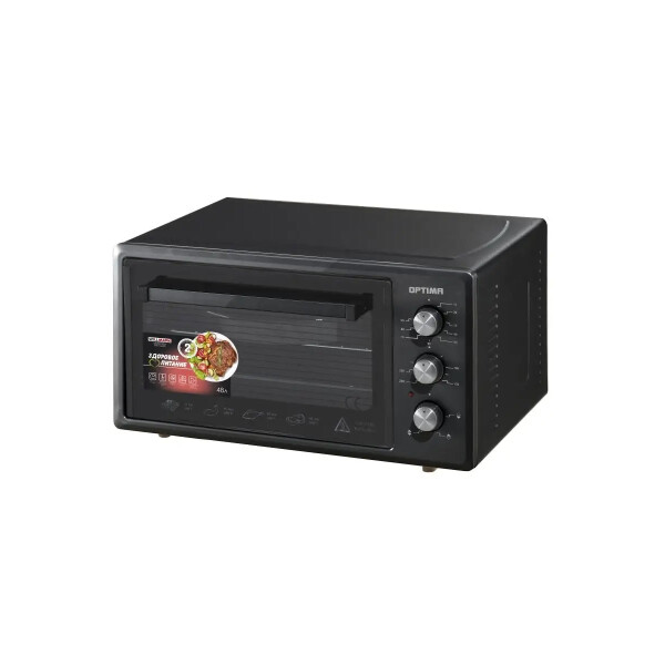 Духовка электрическая OPTIMA OF-48BL довольно проста в использовании и управлении. При этом она позволит вам готовить различные мясные и рыбные блюда, запеканки, выпечку. Электропечь имеет достаточно вместительную внутреннюю камеру (48 литров), что дает возможность готовить в ней блюда на большую семью или для гостей. Два нагревательных элемента (общей мощностью 1600Вт) обеспечивают быстрый и равномерный нагрев от 50 до 300 градусов. OPTIMA OF-48BL оснащена таймером с функцией автоотключения через 90 минут, что несомненно добавляет удобства в использовании данной модели. Качественная теплоизоляция корпуса обеспечивает безопасность и исключает вероятность ожога при прикосновении. Встроенная лампа улучшает обзор и позволяет готовить с комфортом. В комплект входят решетка, круглый и квадратный противни, которые можно одновременно разместить на двух разных уровнях для приготовления блюд.