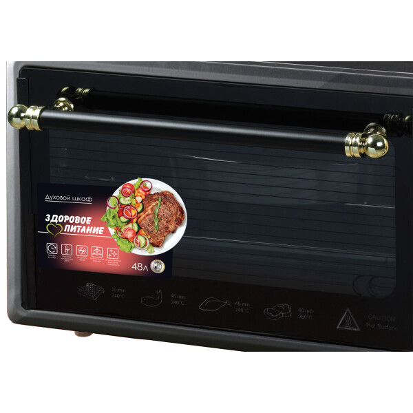 Электрическая духовка OPTIMA OF-48BLR черного цвета не только украсит вашу кухню, но еще и порадует вас горячими блюдами. Есть таймер, термостат. Объем 48 литров. Количество режимов: 3.
