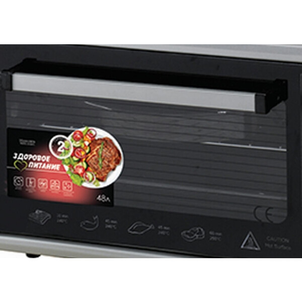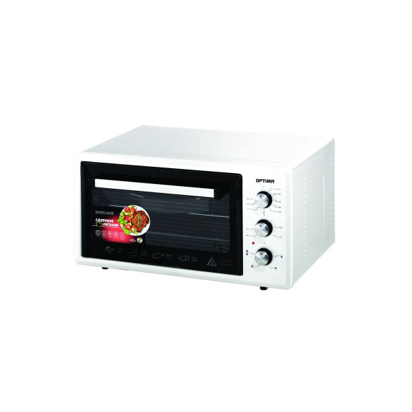 Духовка электрическая OPTIMA OF-48G довольно проста в использовании и управлении. При этом она позволит вам готовить различные мясные и рыбные блюда, запеканки, выпечку. Электропечь имеет достаточно вместительную внутреннюю камеру (48 литров), что дает возможность готовить в ней блюда на большую семью или для гостей. Два нагревательных элемента (общей мощностью 1600Вт) обеспечивают быстрый и равномерный нагрев от 50 до 300 градусов. OPTIMA OF-48G оснащена таймером с функцией автоотключения через 90 минут, что несомненно добавляет удобства в использовании данной модели. Качественная теплоизоляция корпуса обеспечивает безопасность и исключает вероятность ожога при прикосновении. Встроенная лампа улучшает обзор и позволяет готовить с комфортом. В комплект входят решетка, круглый и квадратный противни, которые можно одновременно разместить на двух разных уровнях для приготовления блюд.