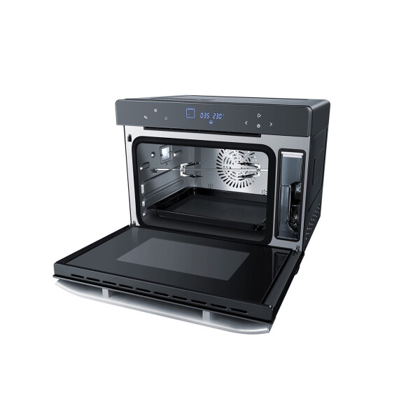 Объём камеры составляет 40 литров, мощность (верхний + нижний ТЭН) 2100 Вт, резервуар для воды на 1450 мл. Электронное управление, 49 автоматических программ, таймер до 7 часов.