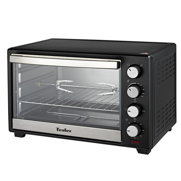 Электропечь Tesler EOG-6000 позволяет использовать как верхний, так и нижний нагрев духовки. Температура нагрева может составлять от 100 до 250 °С. В этой модели также имеется гриль. В комплект входит вертел, держатель, поддон и съемная решетка. Жаропрочное стекло надежно запирает жар внутри и не дает обжечься. Для управления печкой на корпусе расположены удобные поворотные переключатели.