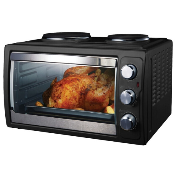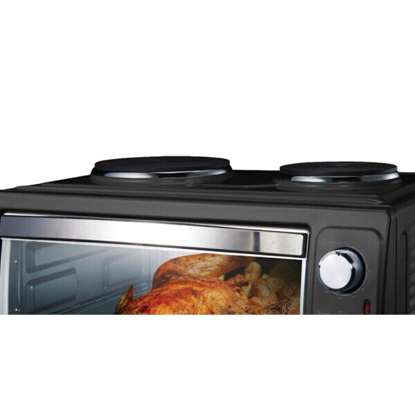 WILLMARK WHO-512B выполнена в стильном дизайне черного цвета с декоративными элементами из нержавеющей стали. Данная модель объединила в себе мощный и вместительный духовой шкаф, а также плиту с чугунными конфорками. WILLMARK WHO-512B идеально подойдет для эксплуатации в малогабаритных помещениях и станет незаменимой помощницей на вашей кухне. С помощью поворотных переключателей вы можете легко регулировать степень нагрева духового шкафа и чугунных конфорок. Температура в камере регулируется от 90 до 230 C. Мощность духового шкафа 1500Вт, а конфорок 800 и 1200Вт. Объем в 45 литров позволит приготовить ужин даже на большую семью, а благодаря мощным нагревательным элементам в духовом шкафу это не займет много времени. Таймер обратного от счета, рассчитанный на 90 минут, позволит не отвлекаться на готовку, а посвятить это время другим заботам.