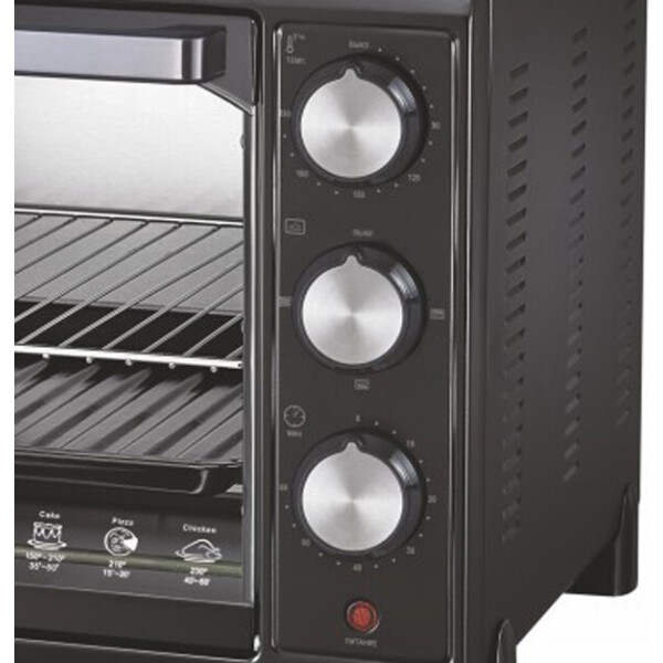 Управление прибором механическое, осуществляется посредством регуляторов. Регулятор температуры нагрева до 230 С. Благодаря таймеру вы можете запрограммировать точное время приготовления до 60 минут.