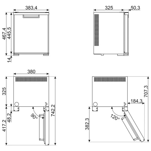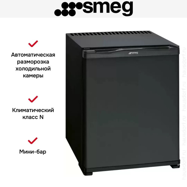Минибар Smeg MTE30 выполнен в строгом черном цвете. Автоматическое размораживание камеры упростит уход за прибором, а регулируемая полка для бутылок в дверце позволит разместить высокие емкости. Светодиодное освещение не требует замены ламп и обеспечит полное удобство при использовании прибора.