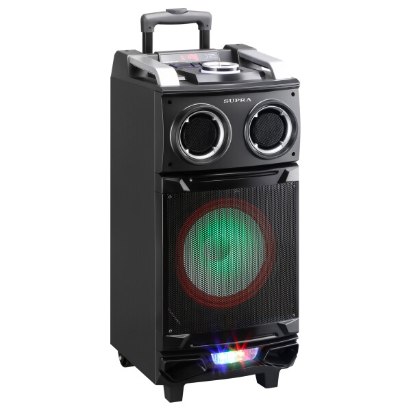 Минисистема Supra SMB-880 работает от аккумулятора. Прибор легко переносить, так как он снабжён удобной ручкой. Данная модель проигрывает аудиофайлы через Bluetooth, так что вы сможете воспроизвести музыкальную коллекцию, хранящуюся на вашем смартфоне, планшете или МР3-плеере. Вы сможете изменить настройки звучания в соответствии с вашими вкусами: регулируйте уровень высоких и низких частот, чтобы любимые треки раскрывались во всей своей многогранности.