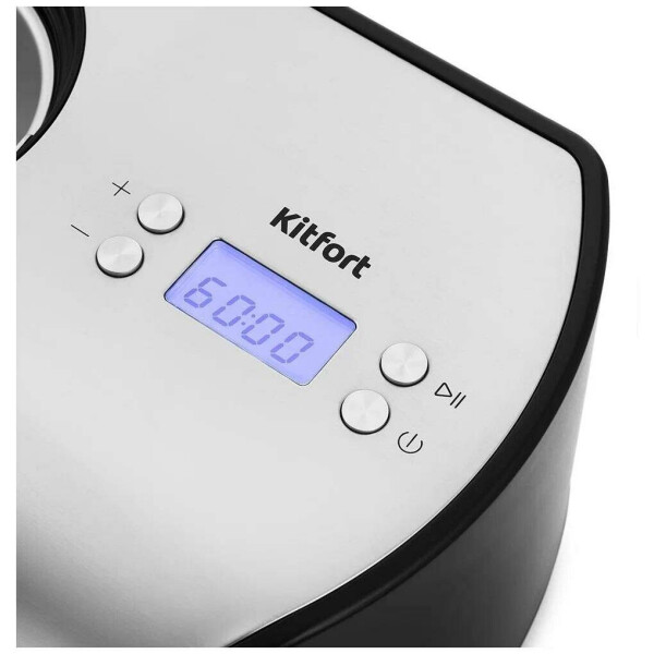 На панели управления вы можете установить время приготовления мороженого от 5 до 60 минут с шагом 1 мин. Таймер по умолчанию установлен на 60 минут этого времени достаточно для приготовления домашнего ведерка мороженого! Принцип работы мороженицы состоит в том, что компрессор охлаждает ведёрко с ингредиентами, а затем смесь мороженого перемешивается лопастью и одновременно охлаждается. Функция поддержки низкой температуры не даст растаять готовому десерту!
