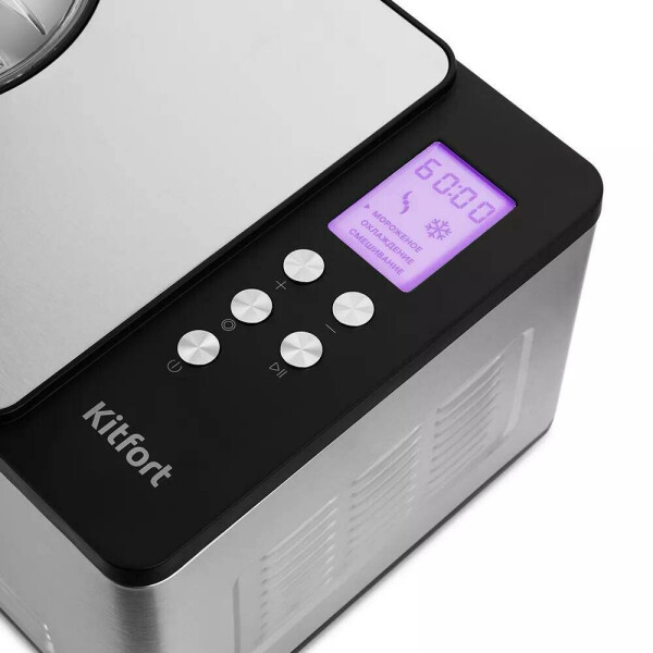Выберите нужную программу: Мороженое, Охлаждение или Смешивание и установите время работы от 5 до 60 минут с шагом 1 мин. Таймер по умолчанию установлен на 60 минут этого времени достаточно для приготовления домашнего ведерка мороженого! Принцип работы мороженицы состоит в том, что компрессор охлаждает ведёрко с ингредиентами, а затем смесь мороженого перемешивается лопастью и одновременно охлаждается. Функция поддержки низкой температуры не даст растаять готовому десерту!