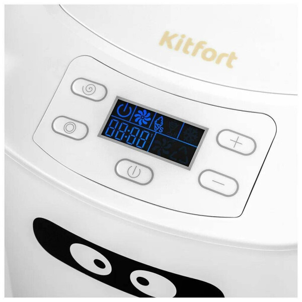 На панели управления есть таймер, режимы мягкого, твёрдого мороженого, охлаждение, поддержание низкой t. В режиме твёрдого мороженого структура будет такая же кремовая, как и в режиме мягкого мороженого, но она будет содержать маленькие кристалики льда. Принцип работы мороженицы состоит в том, что компрессор охлаждает ведёрко с ингредиентами, а затем смесь мороженого перемешивается лопастью и одновременно охлаждается. Функция поддержки низкой температуры не даст растаять готовому десерту!