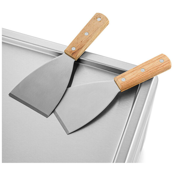 В комплекте с мороженицей идут 2 лопатки-шпателя, которыми удобно измельчать и смешивать смесь, распределять её по мороженице, а затем нарезать и соскребать готовое мороженое.