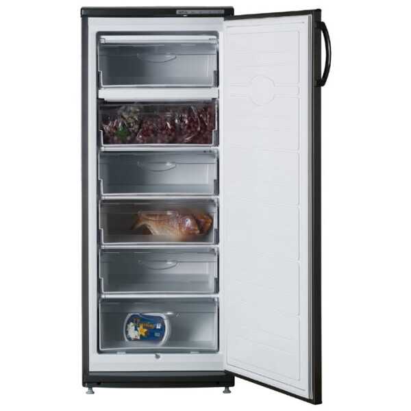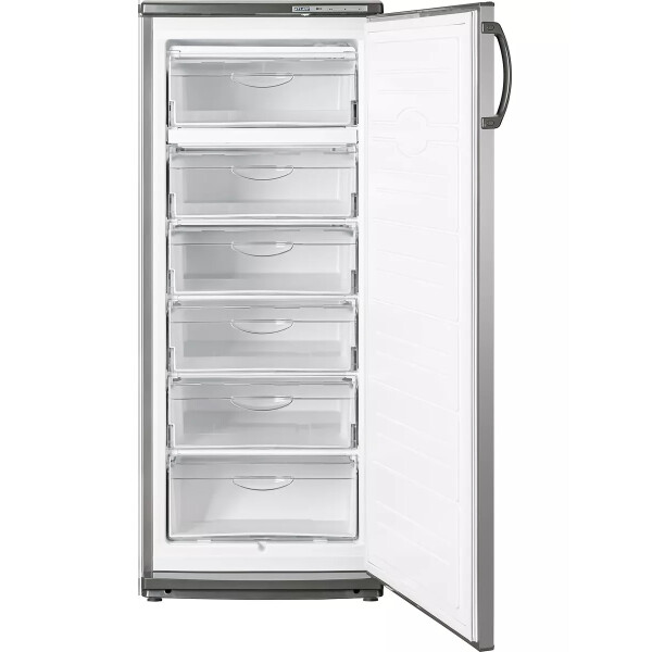 Морозильный шкаф ATLANT М 7184-070 можно перевести в режим суперзаморозки, когда мощный поток холодного воздуха подается на определенную полку для быстрой обработки продуктов. Минимальная температура, поддерживаемая в камере, составляет −18 градусов. Морозильник также способен поддерживать холод при отключении электричества: во время автономной работы настроенная температура поддерживается внутри еще 17 часов, что позволяет не волноваться за свежесть и сохранность запасов. Габаритные размеры шкафа (60х63х150 см) позволяют ему без труда разместиться в кухонном пространстве, а перевешиваемая дверца обеспечивает дополнительное удобство при эксплуатации.