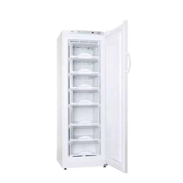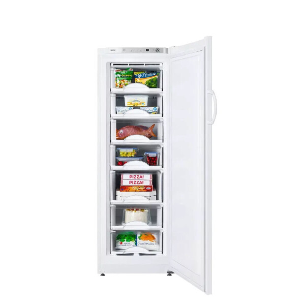 Даже если с подачей электричества что-то случится, температура внутри морозильника долго будет оставаться подходящей для хранения продуктов. Эта модель рассчитана на то, что при отключённом электропитании продукты будут храниться ещё около 16 часов.
