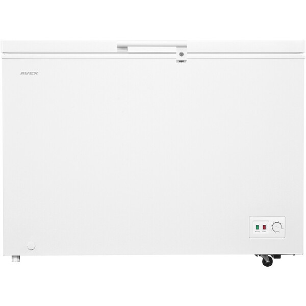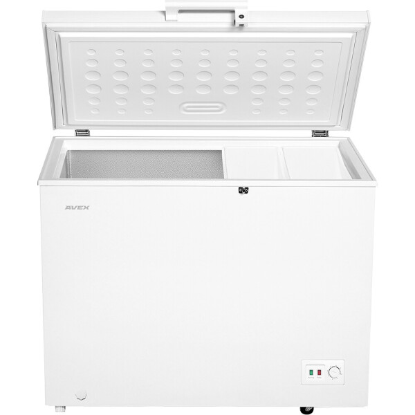 Морозильный ларь AVEX CFS 360L3 с общим объемом 350 л и функциями быстрой и глубокой заморозки. Также в особенности входит: