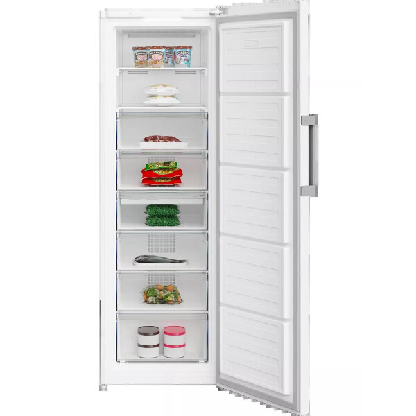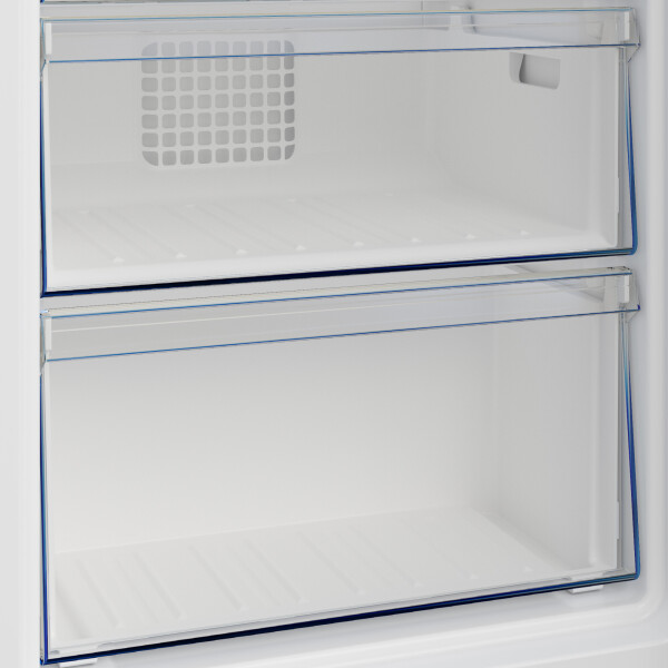 Морозильная камера Beko B3R FNK312 W работает за счет высокопроизводительного компрессора и качественного хладагента R600a. Благодаря этому заданная температура стабильно поддерживается внутри устройства вне зависимости от условий окружающей среды. За счет оптимального полезного объема в морозильной камере можно поместить большое количество пищи. В конструкции есть шесть прозрачных пластиковых ящиков, поднос и две полки, что позволяет упорядоченно хранить продукты разных типов: готовые блюда, полуфабрикаты, овощи и фрукты, десерты.