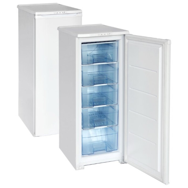 Морозильный шкаф Бирюса 114 – однокомпрессорный отдельно стоящий бытовой прибор, предназначенный для долговременного хранения продуктов. Модель снабжена 1 камерой, полезный объем которой составляет 94 л. Внутри камеры предусмотрено 5 отдельных секций, в которых можно хранить продукты различных типов во избежание смешивания запахов: мясо отдельно от рыбы, грибов, фруктов, овощей и ягод. Регулирование температуры охлаждение обеспечивается поворотом специальных ручек.
