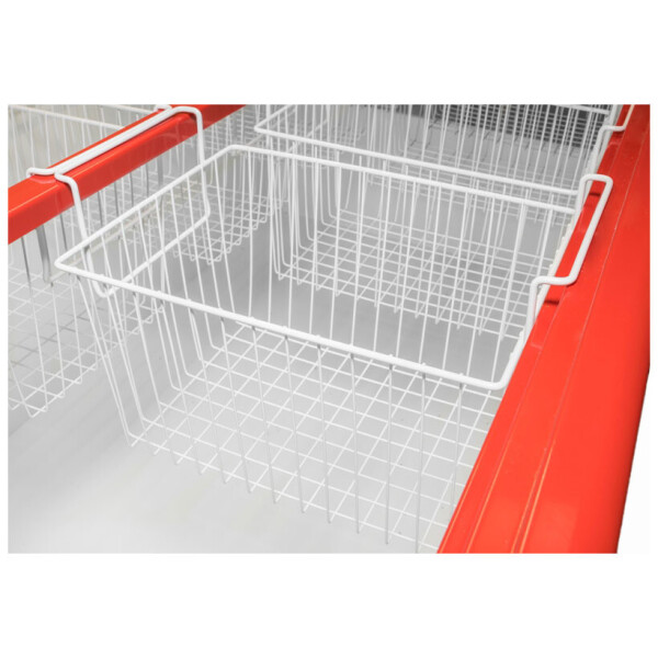 Особое внимание уделено прозрачности и прочности стекла. 16 корзин позволяют выложить товар на верхнем ярусе, максимально полно демонстрируя его покупателю.