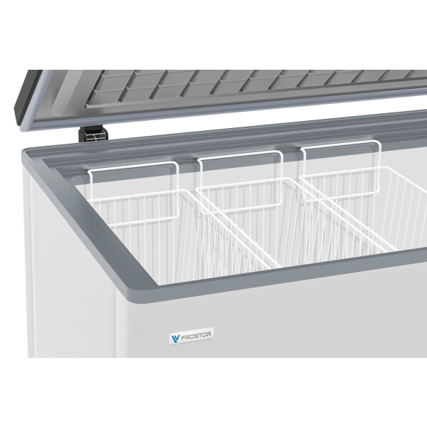 Морозильный ларь Frostor F 350 S, полезный объем которого равен впечатляющим 310 л, является отличным вариантом для использования в предприятиях торговли и общественного питания, а также везде, где требуется хранить большой объем замороженных продуктов. Ларь оборудован прочной, надежно фиксируемой крышкой. Пользователю доступна ручная регулировка рабочей температуры. Минимально возможный уровень температуры составляет -25 C.