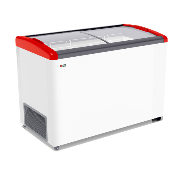 FG 475 E - морозильный ларь со стеклянной изогнутой крышкой для лучшей демонстрации товара покупателям.Объем ларя 410 литров. Этого достаточно для хранения большинства замороженных продуктов. Ларь идеально подходит для использования внутри и снаружи помещений, в стационарных и временных торговых точках. Колесики позволяют легко перемещать его по территории.