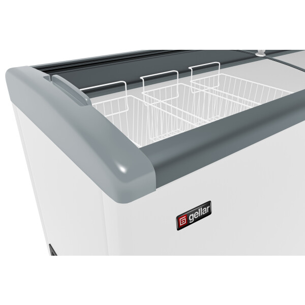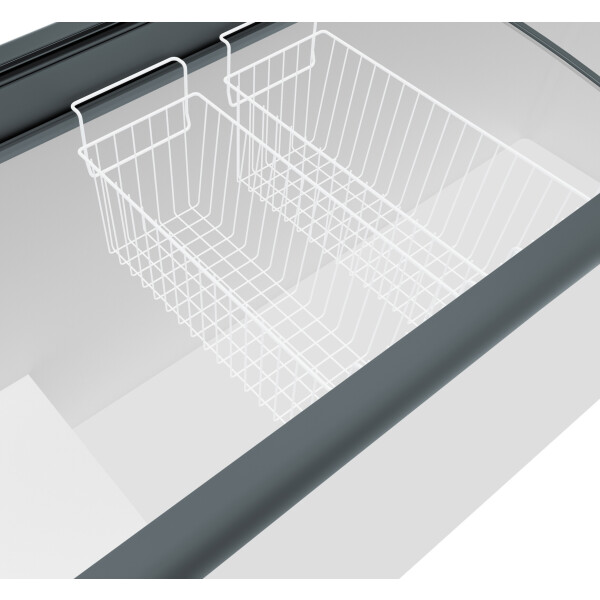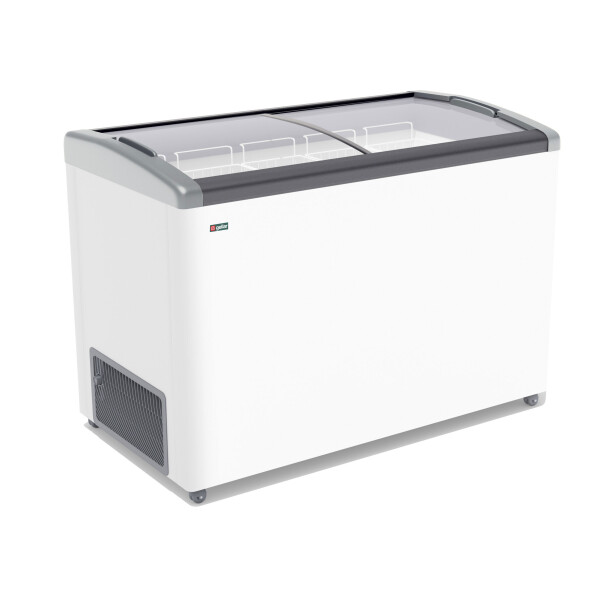 FG 475 E - морозильный ларь со стеклянной изогнутой крышкой для лучшей демонстрации товара покупателям. Объем ларя 410 литров. Этого достаточно для хранения большинства замороженных продуктов. Ларь идеально подходит для использования внутри и снаружи помещений, в стационарных и временных торговых точках. Колесики позволяют легко перемещать его по территории.