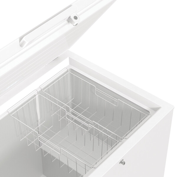 Морозильник-ларь Gorenje FH301CW выполнен в эргономичной форме и белом цвете. Он имеет удобное электронное управление, расположенное прямо на корпусе. Стоит также отличную организацию - гибкую систему корзин. Сетчатые корзины помогут вам легко навести порядок среди продуктов, чтобы ничего не забыть и не потерять. Данная модель имеет 4 климатических класса, 4 колесика, 2 корзины и замок.