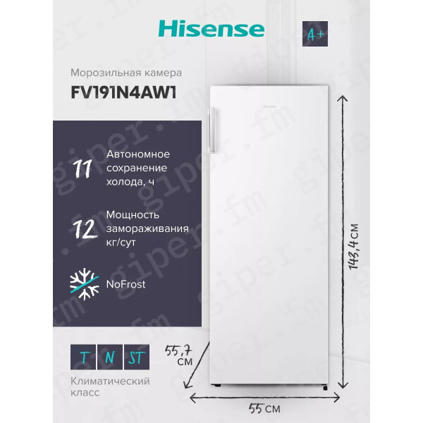 Морозильный шкаф HISENSEFV191N4AW1 предназначен для заморозки и длительного хранения продуктов и полуфабрикатов в частных домах, квартирах, отелях и офисах. В 5 ящиках шкафа можно с удобством разместить разнообразные продукты. И вам не придется беспокоиться о необходимости размораживания его для профилактики система No Frost все сделает за вас.