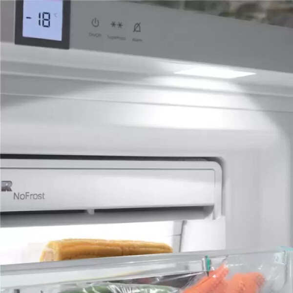 Размораживание морозильника производится с помощью автоматической системы No Frost. По камере циркулирует охлаждённый воздух, не позволяющий образовываться наледи и создающий одинаковые условия для хранения продуктов по всех уголках морозильника.