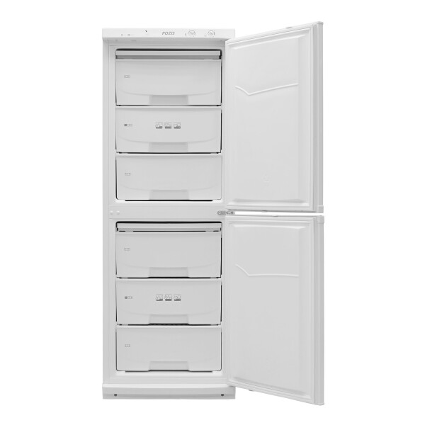 Двухкамерный морозильный шкаф Pozis FVD-257 оснащен двумя компрессорами, использующими экологически безопасный хладагент R600a. Суммарный полезный объем двух камер составляет 204 литра при габаритных размерах 168х60х61,5 см. Объем каждой камеры делится между тремя выдвижными пластиковыми контейнерами, которые позволяют с максимальной пользой использовать внутреннее пространство. Мощность заморозки одной камеры составляет до 7 кг в сутки. Несмотря на внушительный объем, представленный морозильный шкаф отличается низким потреблением энергии и уровнем шума до 45 Дб.