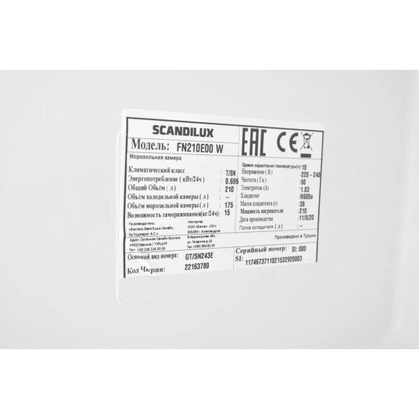 В морозильной камере Scandilux FN210E00 W подобраны и до мелочей продуманы все самые важные и нужные функции: