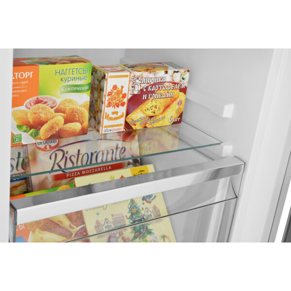 Морозильная камера Scandilux дает уникальную возможность дополнительно увеличивать объем для еще более крупных продуктов: полки из закаленного стекла между секциями можно снимать. То есть, если вынуть ящик и полку под ним, то объем для крупногабаритного продукта сразу увеличится в 2 раза! Это позволит поставить посуду большого размера, целую тушку индейки или торт. Такую опцию предоставляют далеко не все бренды!