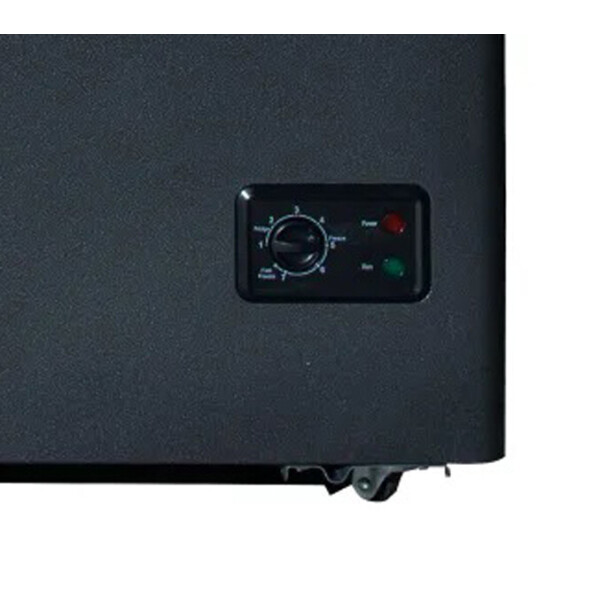 Панель управления состоит из механического регулятора мощности охлаждения размеченного на установку минимальной и максимальной температуры внутри камеры. Температура регулируется от +10 до -28градусов Цельсия, таким образом, изделие может работать и в качестве холодильника. В комплектацию модели входит две подвесных корзины.