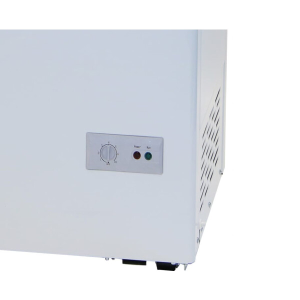 Панель управления состоит из механического регулятора мощности охлаждения, размеченного на 7 единиц с устанавливаемой температурой внутри. При средней загруженности температура регулируется от -16 до -24 градусов Цельсия. Световые индикаторы: питания от сети (красного цвета) и индикатора работы (зелёного цвета).