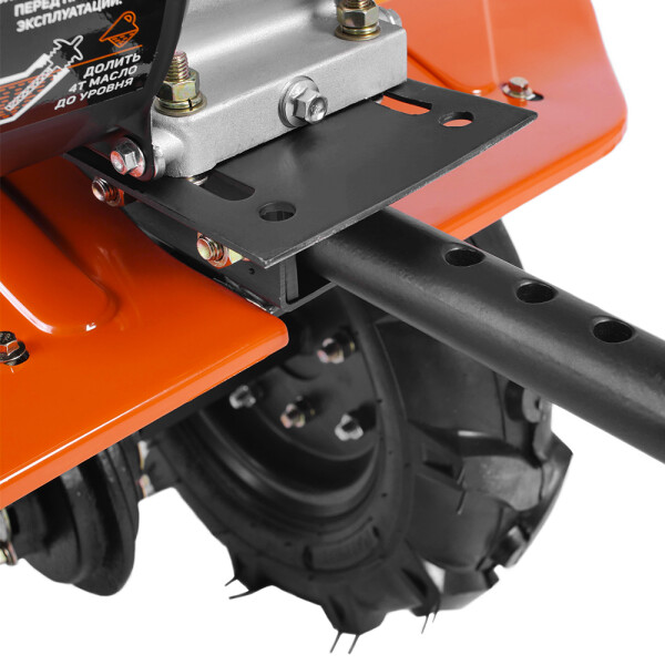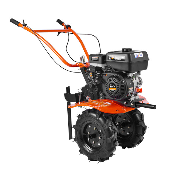В комплектации закаленные фрезы, пневматические колеса с глубоким профилем протектора, сошник. Укрепленная рама с универсальной сцепкой позволяет установить дополнительное навесное оборудование или использовать вместе с тележкой.