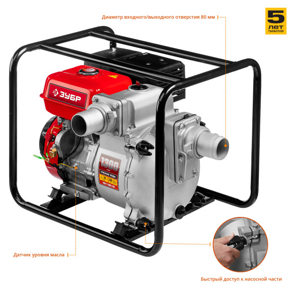 Профессиональная мотопомпа для перекачивания сильнозагрязненной воды. Обеспечивает высоту напора до 26 м. Идеальна для тяжелых условий работы на стройке