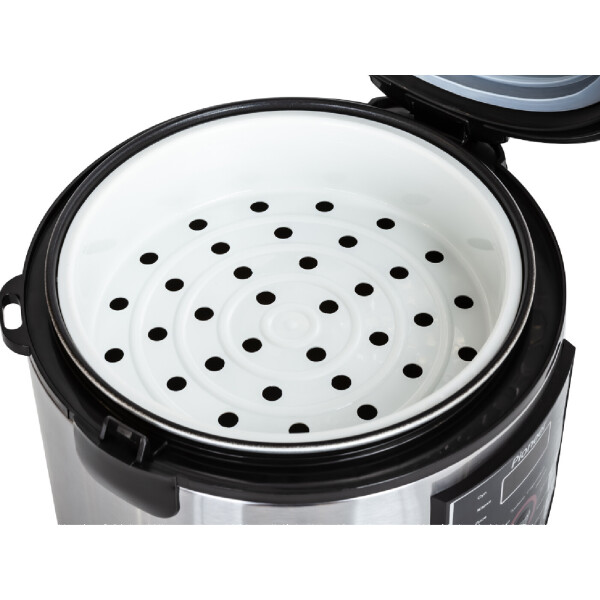 Мультиварка Pioneer MC201 мощностью 860 Вт c LED-дисплеем, 20 автопрограммами и поддержанием температуры поможет вам приготовить множество полезных, вкусных и питательных блюд без особых усилий. Благодаря таймеру отсрочки есть возможность приготовить еду к назначенному времени.МУЛЬТИВАРКА MC201 с экологичной вместительной алюминиевой чашей объемом 5 л и антипригарным покрытием Daikin имеет 20 автопрограмм приготовления и более 200 режимов приготовления. Мультиварка поставляется с книгой рецептов. В ней вы найдете самые разнообразные блюда для завтра, обеда и ужина, например, нежный пирог с творогом и вишней, стир-фрай или венгерский гуляш. Возможность готовить домашний сыр - особый раздел в книге рецептов. Максимальный комфорт в повседневном приготовлении блюд любой сложности обеспечивается множеством режимов и функций, а также интуитивно понятным электронным управлением.