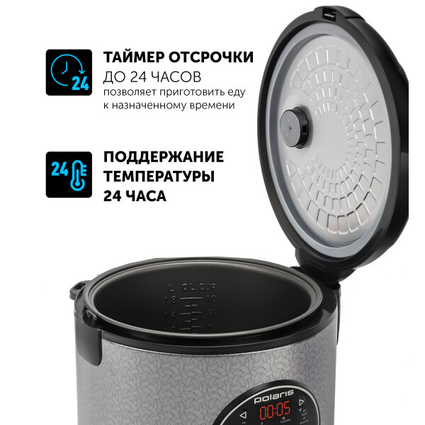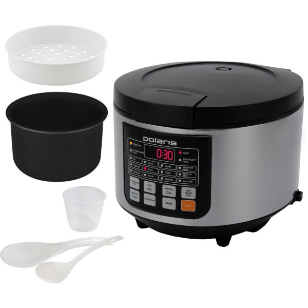 Чаша в Polaris PMC 0365AD имеет объем 3 л и обладает антипригарным (тефлоновым) покрытием, поэтому готовящиеся в ней блюда не пристанут к стенкам. Управление параметрами работы устройства и выбор предпочтительной программы приготовления осуществляется при помощи электронной панели. О выбранном режиме приготовления оповестит дисплей. Имеется отсрочка начала приготовления блюда на 24 часа максимум. Термоизолированный корпус, выполненный из металла, остается холодным даже при максимальной температуре жарки.