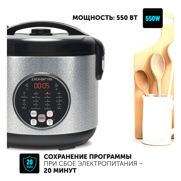 Мультиварка Polaris PMC 0365AD возьмет на себя заботы, связанные с приготовлением разнообразных блюд. Представленное устройство собрало в себе функционал различных кухонных приборов, благодаря чему оно может варить, запекать, томить на маленькой температуре, жарить и многое другое. Устройство получило серебристо-черную расцветку корпуса, поэтому оно станет идеальным решением для кухни в любом интерьере. Имея мощность 550 Вт, мультиварка готова предоставить вам 20 автоматических программ приготовления различных блюд.