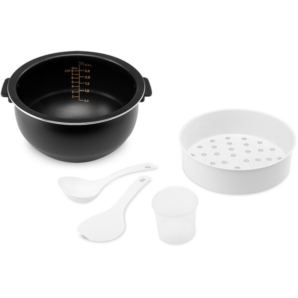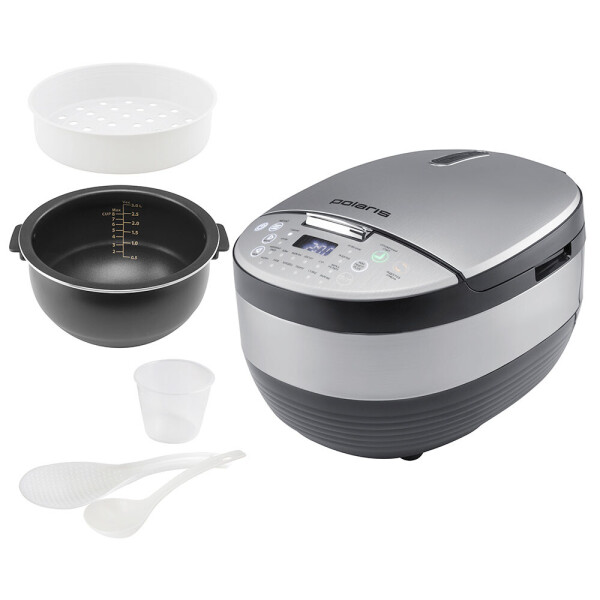 Решетка пароварки, которая поставляется вместе с ней, позволяет готовить сразу 2 блюда. В чаше может готовиться гарнир, а в решетке тушиться на пару котлеты или фрикадельки. Такое решение понравится тому, кто выбирает здоровое питание. Температура и время приготовления выбираются владельцем вручную. Таким образом, мультиварка Polaris PMC 0490AD станет практичным решением для кухни любого размера, особенно маленькой, и каждой семьи. При готовности блюда прибор издаст звуковой сигнал и включит режим подогрева. Если же вы хотите, приходя с работы, ужинать теплой едой, с утра сложите ингредиенты в чашу, установите таймер отсрочки и наберите комбинацию клавиш для нужного блюда.