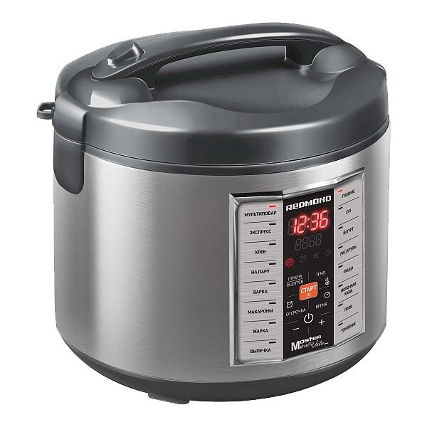 Чаша в модели Redmond RMC-M252 имеет объем 5 литров. Антипригарное керамическое покрытие упрощает ее очистку после использования. Настройка и выбор режима осуществляются при помощи тактовых кнопок, информация отображается на небольшом дисплее. Также устройство оборудовано часами. Мультиварка имеет удобную функцию поддержания температуры и отсрочки старта работы. Защита от удара током делает ее использование безопасным.