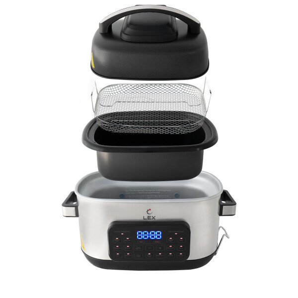 Инновационное сочетание мультиварки и аэрогриля в модели LXМС 5501. Многообразие различных программ от приготовления супа, томление, готовки на пару, до жарки на гриле с получением хрустящей корочки и выпеканием разнообразной сдобы. Теперь вы можете порадовать себя и своих близких неограниченным спектром воплощения любых кулинарных фантазий! Универсальная мультипечь с мощностью 1330 Вт, двумя крышками для разных режимов и понятным электронным управлением позволит приготовить вкусные блюда быстро и с сохранением всех полезных компонентов Ваших продуктов. Функции Отложенный старт до 24 часов и Подогрев до 10 часов сэкономят время нахождения на кухне и обеспечат максимальное удобство. Стильный дизайн этого многофункционального прибора, гармонично дополнит интерьер вашей кухни.