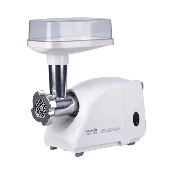 Компактная мясорубка Аксион подойдет для дома, она не займет много места. Также имеются 2 стандартные насадки для фарша. А прорезиненные ножки обеспечивают большую надежность и соотвественно долгий срок службы бытового прибора.