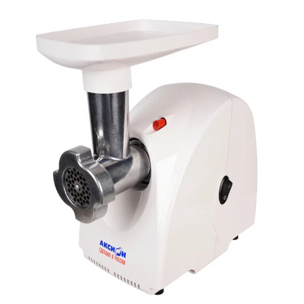 Высокопроизводительную и удобную мясорубку Аксион М 32.01 можно приобрести за небольшие деньги. Она изготовлена в России, но соответствует европейским стандартам качества (есть сертификат ЕС). Дизайн привычен для хозяек – белый пластиковый корпус, черная кнопка включения/выключения. Несмотря на скромные размеры корпуса, в нем есть отсек для хранения шнура и решеток.