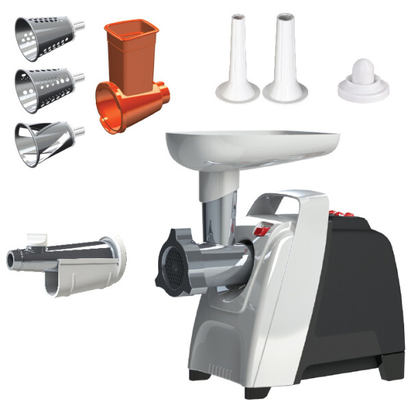 Мясорубка имеет функцию реверс, прочный и острый нож с саблевидной кромкой, удобный отсек для хранения шнура и решеток, ручка для переноски, ножки из нескользящего эластичного материала, автоматическое отключение при перегрузке.