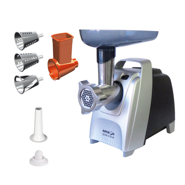 Мясорубка Аксион М62.03 черный-серебро представлена в эргономичном пластиковом корпусе с устойчивыми ножками и небольшими отсеками для аксессуаров и шнура. Данная модель способна за 1 минуту переработать 4 кг фарша. Комфортной эксплуатации способствует электронное управление и функция реверса.