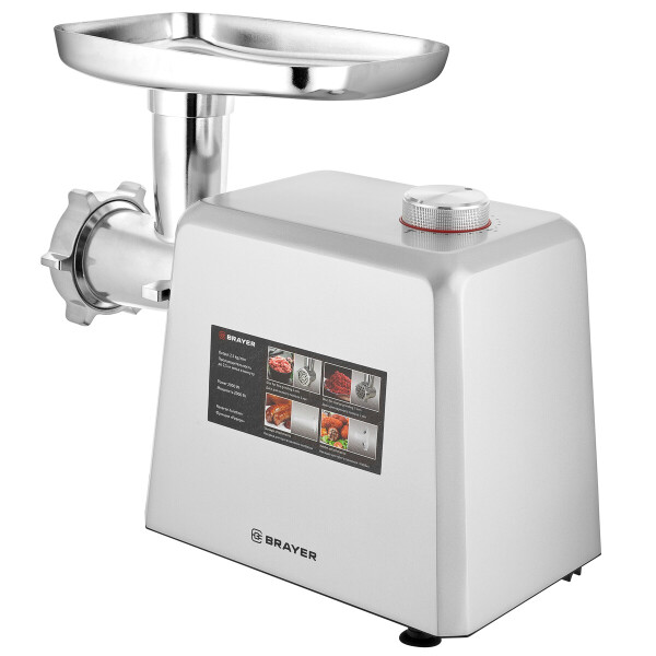 Мясорубка BRAYER BR1605 - простая и удобная в обращении модель, которая станет незаменимой помощницей на кухне. Мясорубка изготовлена из высококачественной стали. Обладает функцией Реверс. В комплекте 2 диска из нержавеющей стали, насадка для приготовления колбас, насадка Кеббе и толкатель для продуктов.