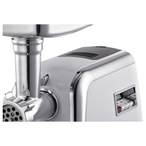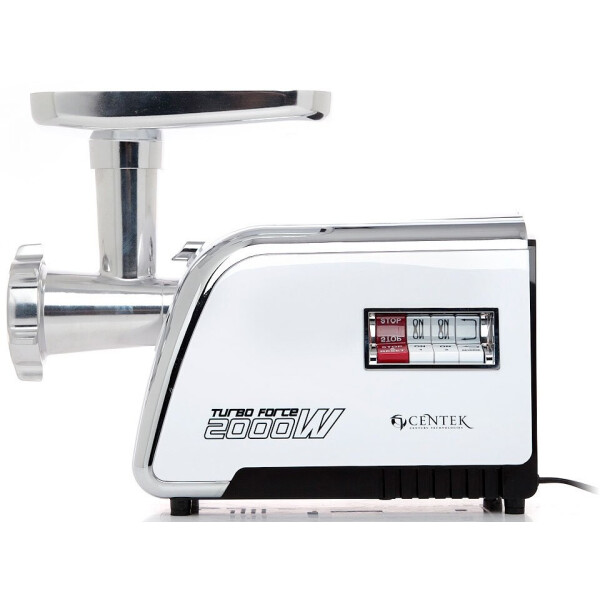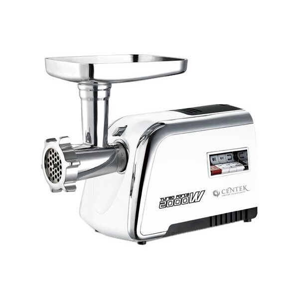Мясорубка Centek CT-1602 имеет хромированный корпус и большой металлический лоток. Основными достоинствами данной модели являются: 2 скорости работы, удобное кнопочное управление и отсек для хранения насадок. Для удобства использования мясорубки предусмотрены прорезиненные ножки и функция реверс.