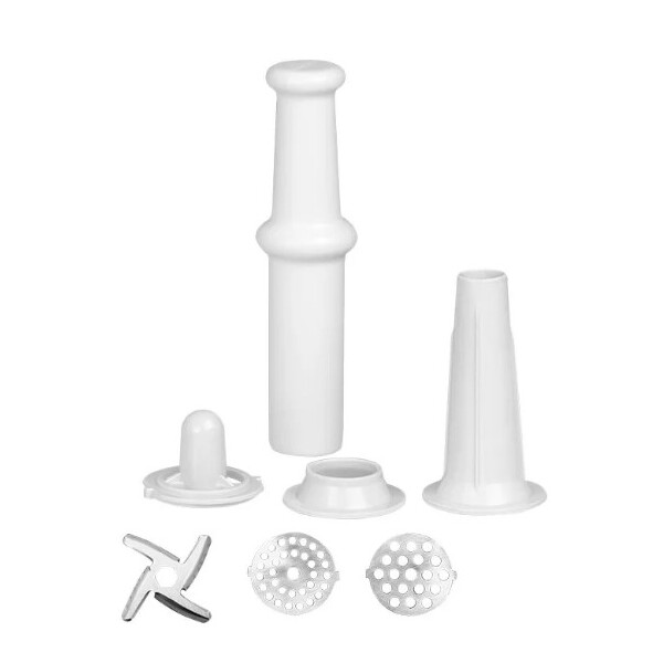 Мясорубка DELTA DL-6100M дает возможность быстро и без усилий приготовить фарш, колбасы, а также переработать другие продукты. Максимальная мощность этой модели равна 2000 Вт. За минуту устройство позволяет измельчить до 1.8 кг. Корпус модели произведен из пластика. В конструкции предусмотрен вместительный лоток для загрузки продуктов. Мясорубка DELTA DL-6100M проста и удобна в управлении. Функция реверса позволяет быстро устранить затор при необходимости. Прорезиненные ножки делают такую мясорубку более устойчивой. В комплект включены 2 диска для фарша, насадки для колбас и кеббе.